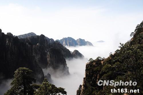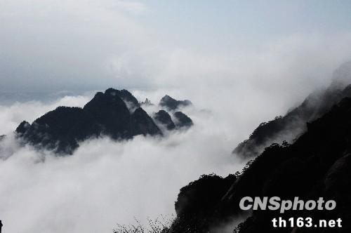3月7日,安徽黄山风景区微雪放晴,云雾弥漫,山峰若隐若现,出现了虎年首场蔚为壮观的云海,令中外游客大饱眼福。中新社发葛军摄