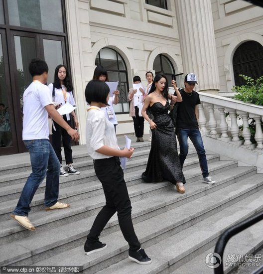 而因为车是敞开式的,所以无奈助理只能在大庭广众下帮着潘霜霜补妆。潘霜霜在补妆的同时看到记者还在拍照,这时,她明显有点不耐烦,眼睛直愣愣的盯着镜头,有点凶。