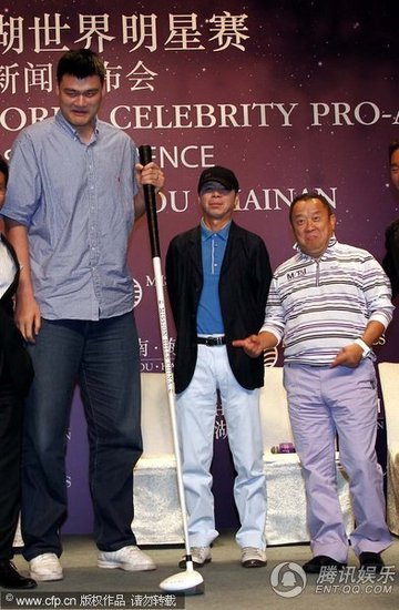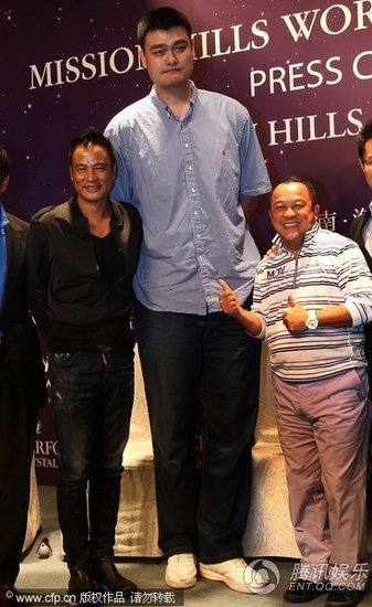 姚明亮相高尔夫活动 曾志伟显“渺小”
