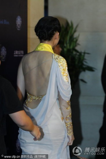 胡杏儿大露背忙补妆 旁若无人擦胸前汗