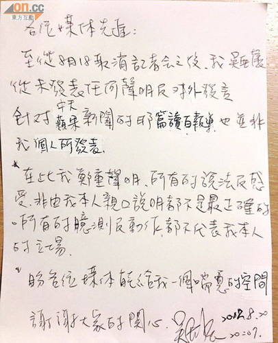 吴亚馨昨晚发亲笔声明,澄清之前从未回应淫照案。