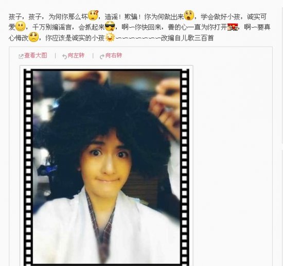 今天,谢娜疑似以一贯的幽默风格调侃回击了“被怀孕”一事,“孩子,孩子,为何你那么坏?造谣!欺骗!你为何做出来?学会做好小孩,诚实可爱,千万别编谣言,会被抓起来。啊,你快回来,善的心一直为你打开。啊,要真心悔改,你应该是诚实的小孩。改编自儿歌三百首。”由此看来,谢娜与张杰的粉丝们又再次感受了一把“狼来了”的故事。(记者:贺晟)