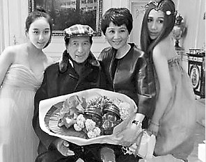 何超欣(左一)、赌王及何超盈(右一)齐为四太庆祝生日,场面温馨。