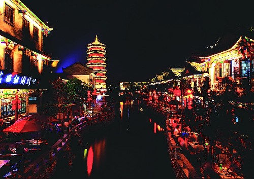 然而,当我置身在滦州古城中的时候,感觉自己产生了错觉,这明明就是江南水乡古镇。夜色中的石板桥,桥下荡漾的流水,乌篷船头的灯火,高耸的宝塔,处处充满着古色古香的江南古镇之风。
