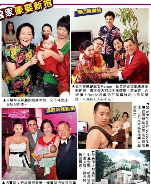 [导读]去年12月曾志伟(微博)涉嫌掌掴黄浩被落案起诉,本月须第4度返警署报到。娱圈不太平,家事更加乱。其儿媳妇Renee(张可蕙)被揭在网上爆粗狂数夫家,传志伟为免在官司期间添乱,已将儿子和新抱逐离家。