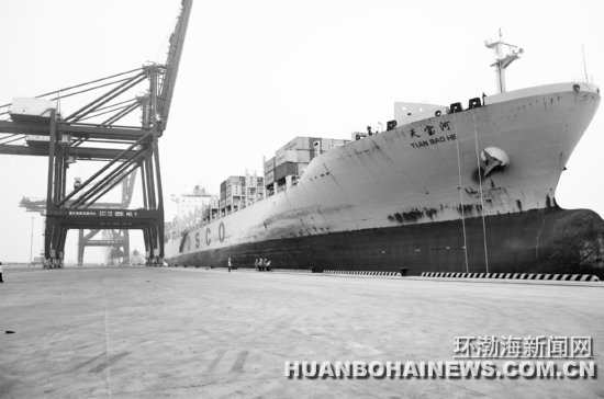 近日,载重能力达6.3万余吨的中远集运“天宝河”号集装箱船舶平稳靠泊港口公司集装箱码头(如图),标志着中远集运的曹妃甸港区至南沙直达集装箱航线正式开通。