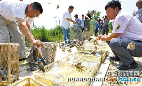 曹妃甸湿地管理处放飞1999只被救助的野鸟(图)